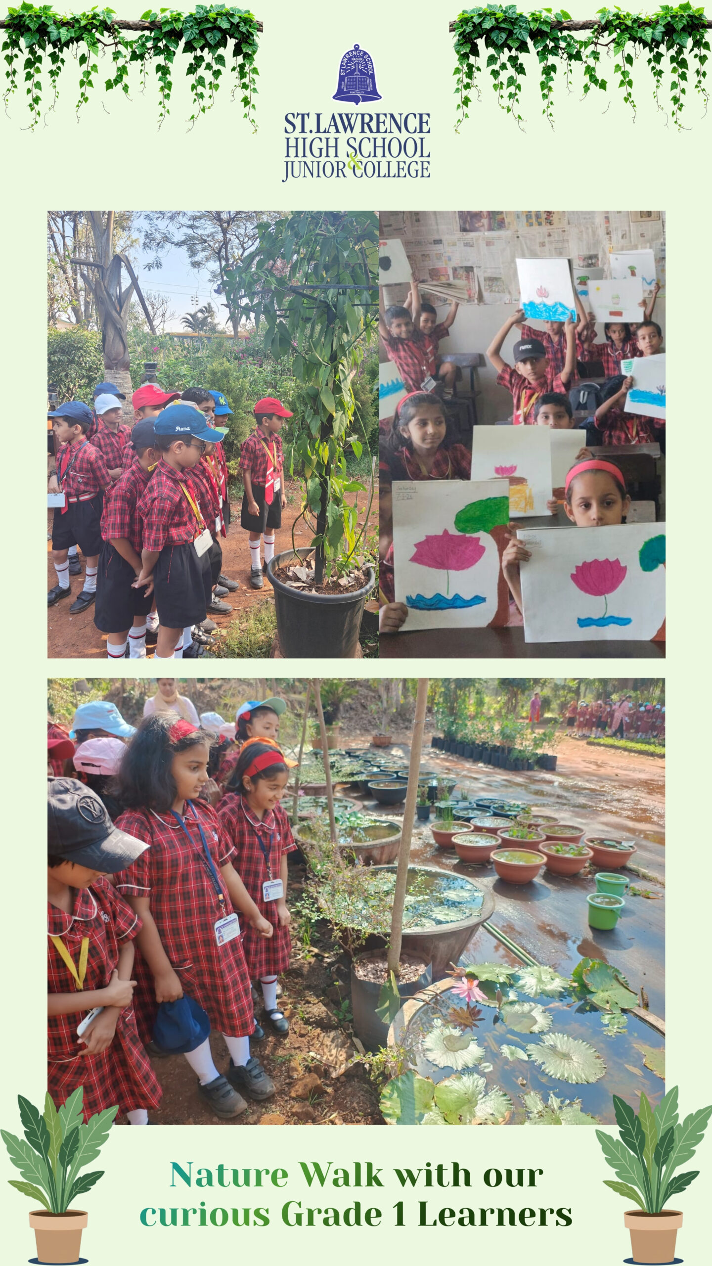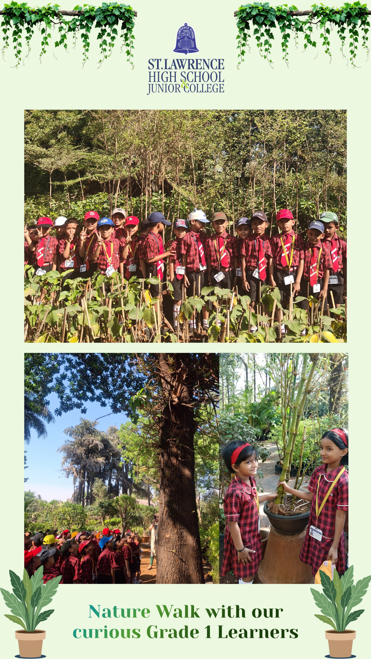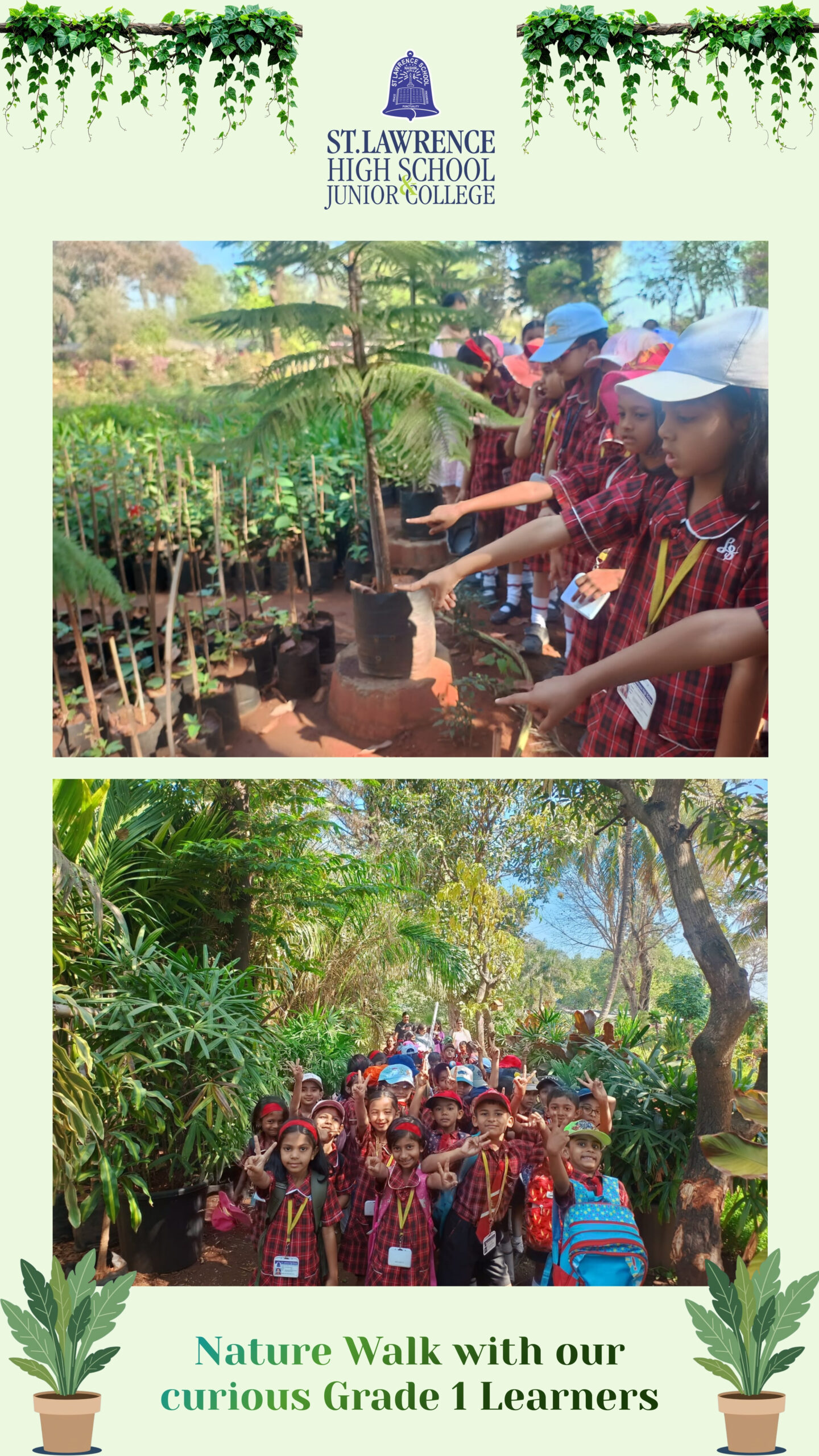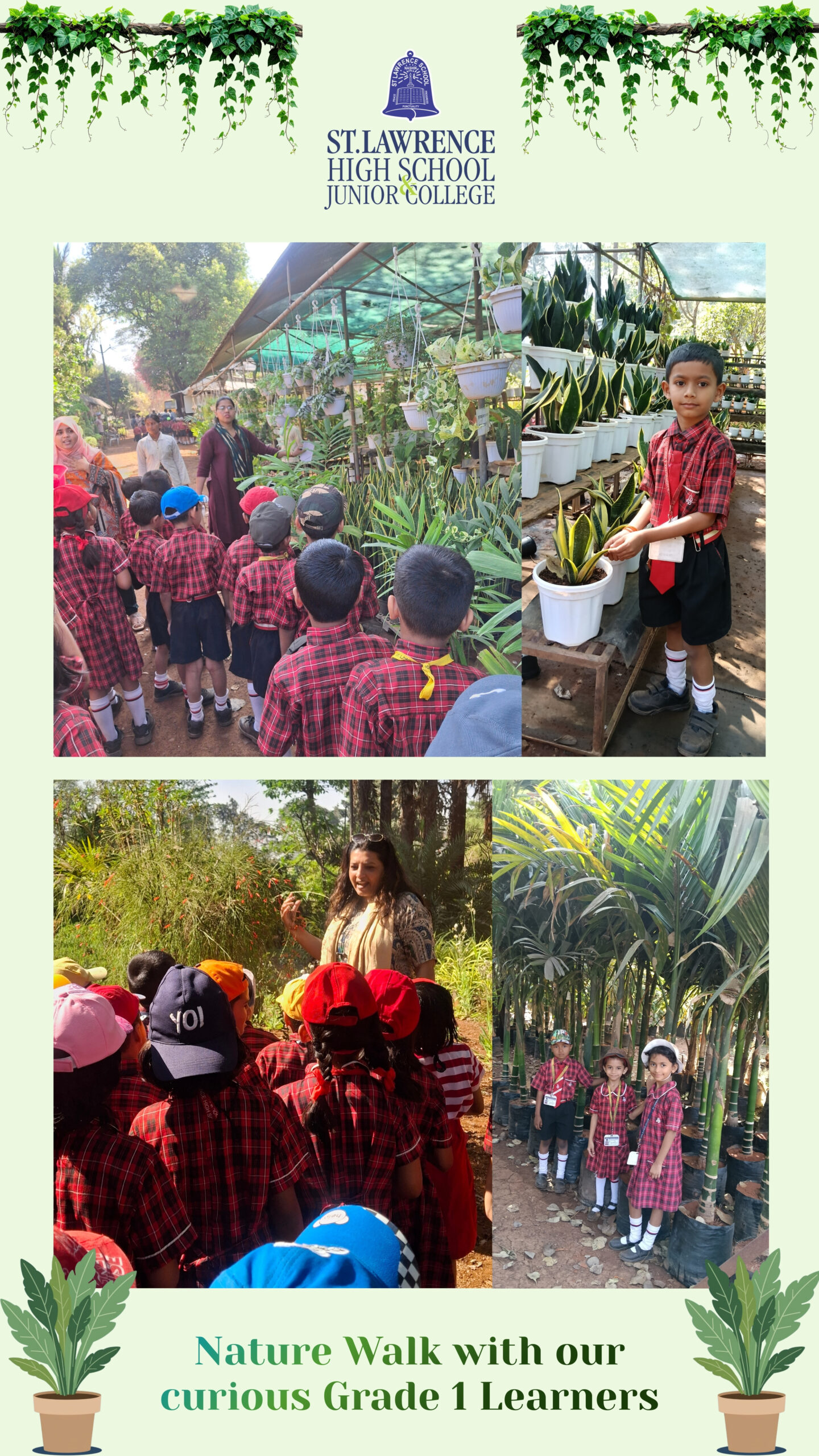 The Grade 1 students from St. Lawrence High School and Junior College went on an exciting field trip to Tapovan Nursery. It was a wonderful opportunity for the young learners to explore nature and to learn about the different types of plants and trees.