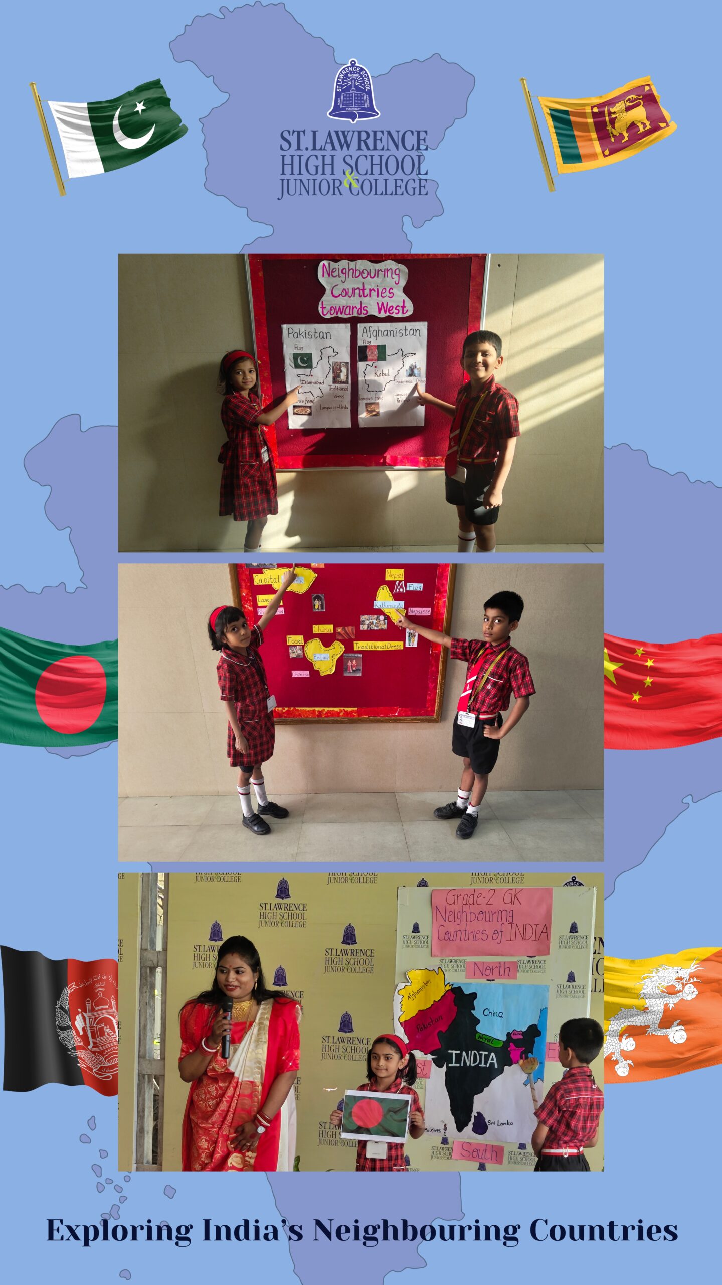 Learning about our neighbouring countries helps us understand the world better. The Grade 2 students at St. Lawrence High School and Junior College learned about the neighbouring countries of India with the help of a PPT and classroom activities.