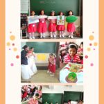 For Onam, teachers dressed in traditional Kerala attire and showed a flashcard of the Onam Sadhya, the grand feast served on banana leaves. Using a map of India, they pointed out Kerala and explained the festival’s story in a simple way.