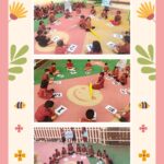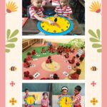 During the session, children used a clock model to move the hour and minute hands and show different times. They also participated in a creative activity where they sat in the sequence of a clock and represented the time themselves.